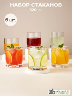 Стаканы стеклянные 315 мл набор 6 шт. граненые универсальные