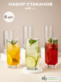 Стаканы стеклянные 440 мл набор 6 шт. граненые высокие