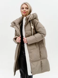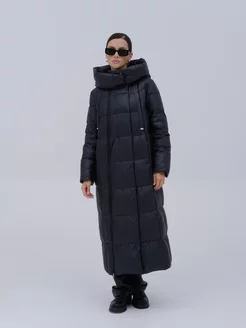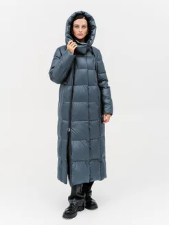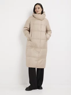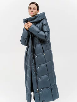Пуховик удлиненный с капюшоном стеганный био-пух зима