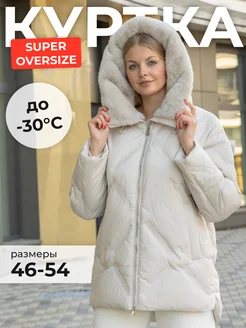 Пуховик больших размеров с меховым капюшоном на био пухе