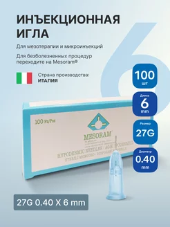 Мезоигла для микроинъекций 27G (0,40 x 6mm), голубая, 100 шт
