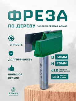 Фреза по дереву, пазовая прямая Алмаз 1007 D50 H25 L80 d12