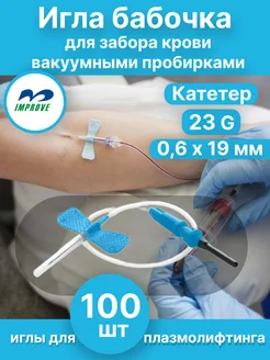 Игла бабочка 23 G катетер для вакуумного забора крови 100 шт