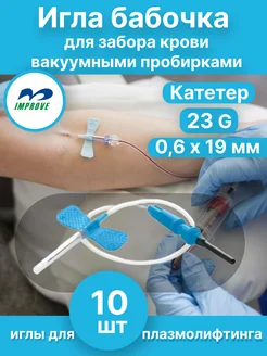 Игла бабочка 23 G катетер для вакуумного забора крови 10 шт