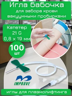 Игла бабочка 21 G катетер для вакуумного забора крови 100 шт