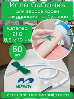 Игла бабочка 21 G катетер для вакуумного забора крови 50 шт
