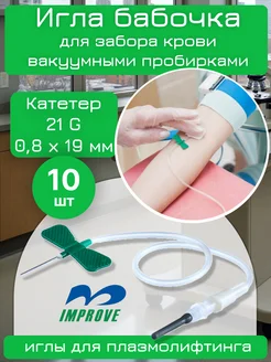 Игла бабочка 21 G катетер для вакуумного забора крови 10 шт