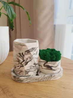 Органайзер и кашпо со мхом на блюдце