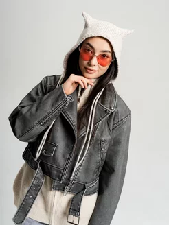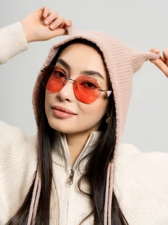 Шапка чепчик с ушками осенне-весенняя вязаная