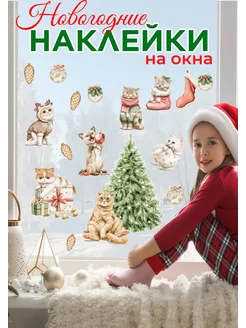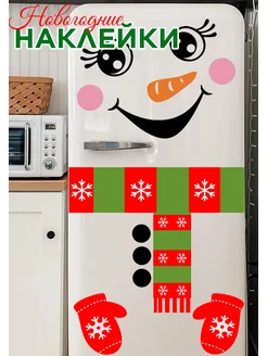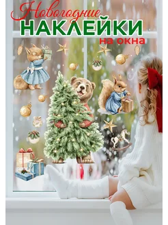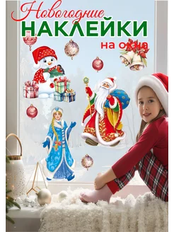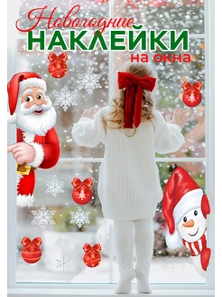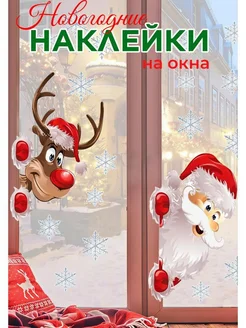 Наклейки новогодние на окна стены дед мороз снежинки олень