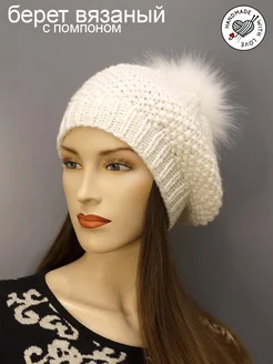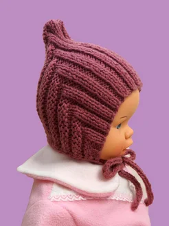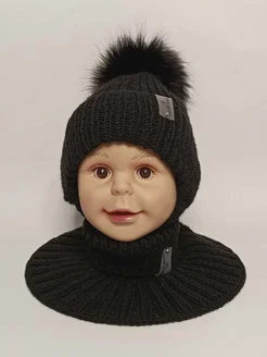 Шапка с помпоном и манишкой для малыша вязаная черная