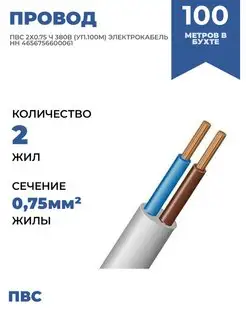 ПРОВОД ПВС 2Х0 75 Ч 380В УП 100М 1 ШТ