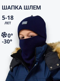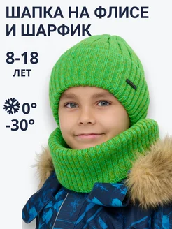 Шапка и шарф снуд зимняя бини детская на флисе до -30