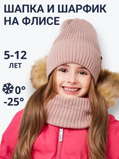 Шапка и шарф снуд зимняя бини детская на флисе до -25