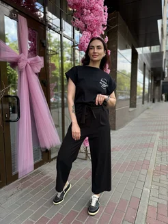 Брюки прямые черные укороченные