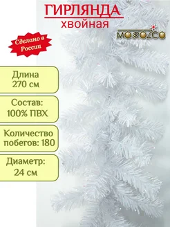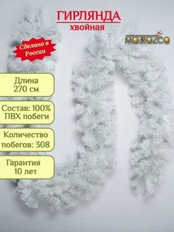 Еловая хвойная белая гирлянда "Рождественская" 270 см