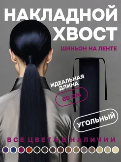 Хвост накладной шиньон на лентах иссиня-черный оттенок