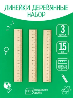 Линейка канцелярская деревянная 15 см набор 3 штуки