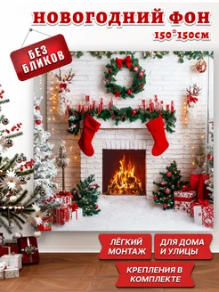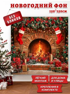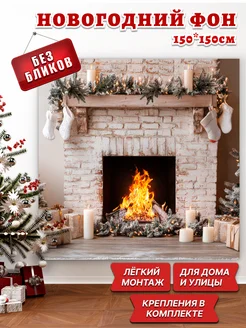 Баннер фотозона на новый год 2026 Камин