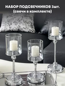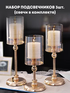 Подсвечник металлический высокий стеклянный колба 3 шт