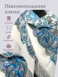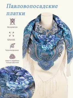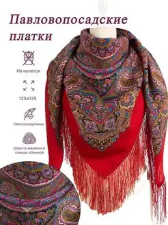 Платок шерстяной Шаль Павловопосадской ман-ры 125х125