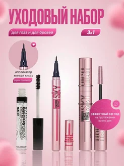 Набор 3в1 тушь для ресниц, гель для бровей, подводка для век