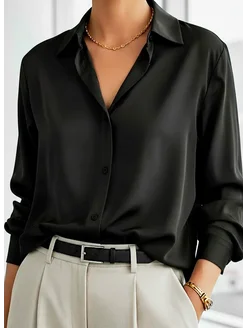 Шелковая рубашка черная оверсайз атласная