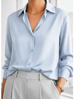 Шелковая рубашка голубая оверсайз атласная