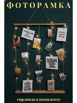 Фоторамка коллаж с прищепками и светодиодной гирляндой