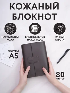 Кожаный блокнот на кольцах