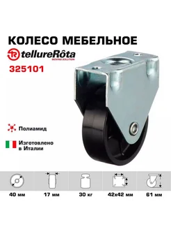 Колесо для мебели неповоротное, диаметр 40 мм