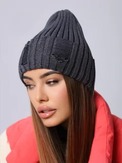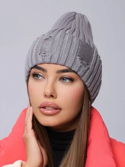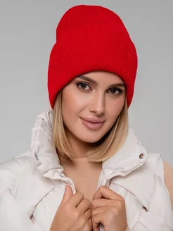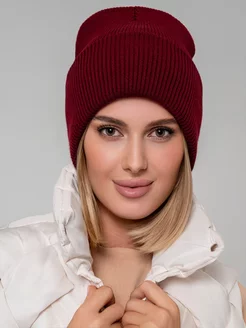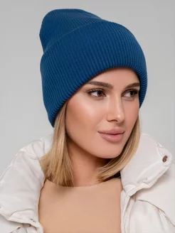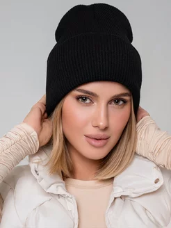 Шапка женская осенняя тонкая с отворотом вязаная бини