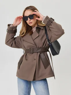 Куртка демисезонная пальто короткое с поясом