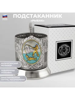 Никелированный подстаканник "Рыбак" с эмалью (Кольчугино)