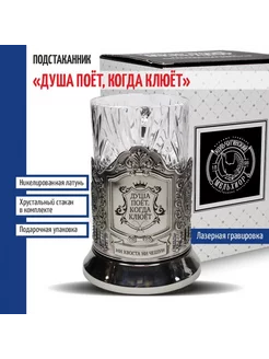 Подстаканник "Душа поёт, когда клюёт" со стаканом