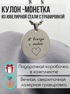 Кулон монетка с гравировкой "Я всегда с тобой"