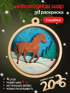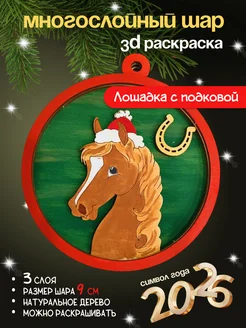 Елочная игрушка шар, 3д раскраска Лошадь Символ года 2026