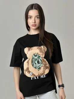 футболка оверсайз с принтом черная