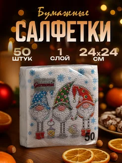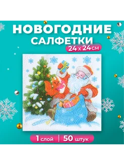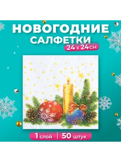 Салфетки бумажные новогодние, 1 слой, 50 листов, 24х24