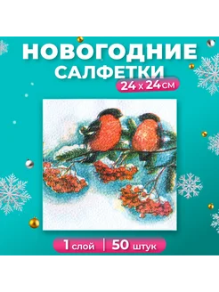 Салфетки новогодние бумажные Снегири 24х24 см 50 шт