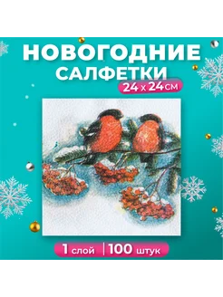 Салфетки новогодние бумажные "Снегири" 24х24 см, 100 шт
