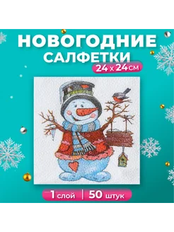 Салфетки новогодние бумажные "Снеговичок" 24х24 см, 50 шт