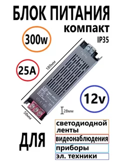 Блок питания для светодиодной ленты 12В 300 Вт тихий IP35