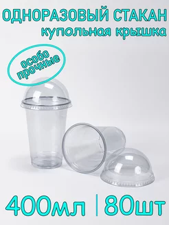 Стакан одноразовый ПЭТ 400 мл 80 шт с купольной крышкой