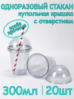 Стакан одноразовый ПЭТ 300 мл 20 шт с купольной крышкой