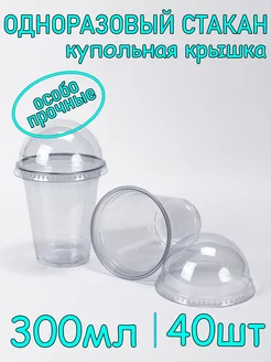 Стакан одноразовый ПЭТ 300 мл 40 шт с купольной крышкой