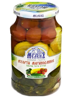 Ассорти маринованные кабачки,черри, огурцы 900 г