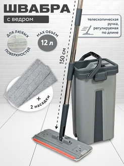 Швабра c отжимом и ведром для мытья пола + микрофибра