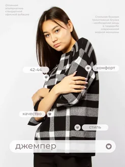 Блузка джемпер клетчатый укороченный рукав оверсайз