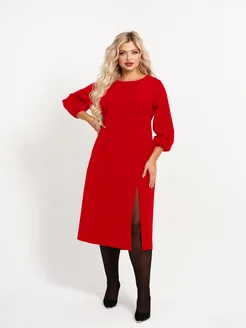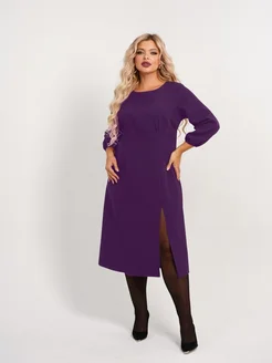 Платье миди нарядное с разрезом больших размеров